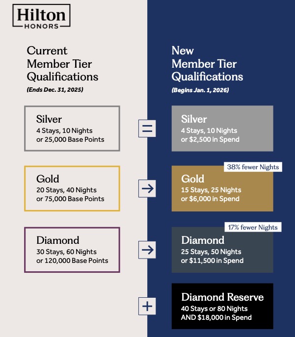 They have concurrently reduced requirements for organically earning Gold and Diamond status. Gold now requires 25 nights, down from 40, while Diamond now requires 50 nights, reduced from 60 nights. If you earn 80 nights and do not have the $18,000 in spend, you would remain Diamond level.